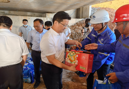 7月26日下午,永州市委副書記、市長陳愛林深入中國二冶濱江新城康養(yǎng)綜合體項目湘江東路建設(shè)工地開展“送清涼”活動,走訪慰問一線施工人員,為他們送去解暑物資,并致以親切問候。永州市人大常委會副主任、市總工會主席胡先榮,市政府秘書長齊愛社參加。