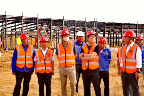 徐永鋒一行深入施工現(xiàn)場,詳細了解了項目鋼結構及土建施工情況,聽取了項目部下一階段工作部署安排。徐永鋒指出,目前工程建設正處于黃金時期,項目部要克服疫情、強降雨給工程帶來的不利影響,加快推進工程建設速度,在保證安全以及質量的同時,確保項目履約目標的實現(xiàn)。